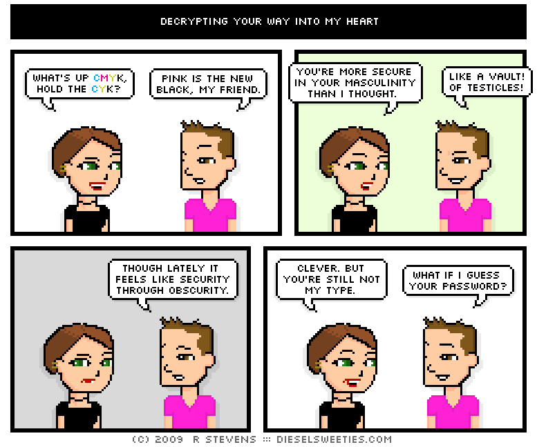 Diesel Sweeties is a pixelated webcomic by Richard Stevens 3 that has been running since April 2000. Sometimes the people kiss the robots.