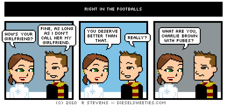 Diesel Sweeties is a pixelated webcomic by Richard Stevens 3 that has been running since April 2000. Sometimes the people kiss the robots.
