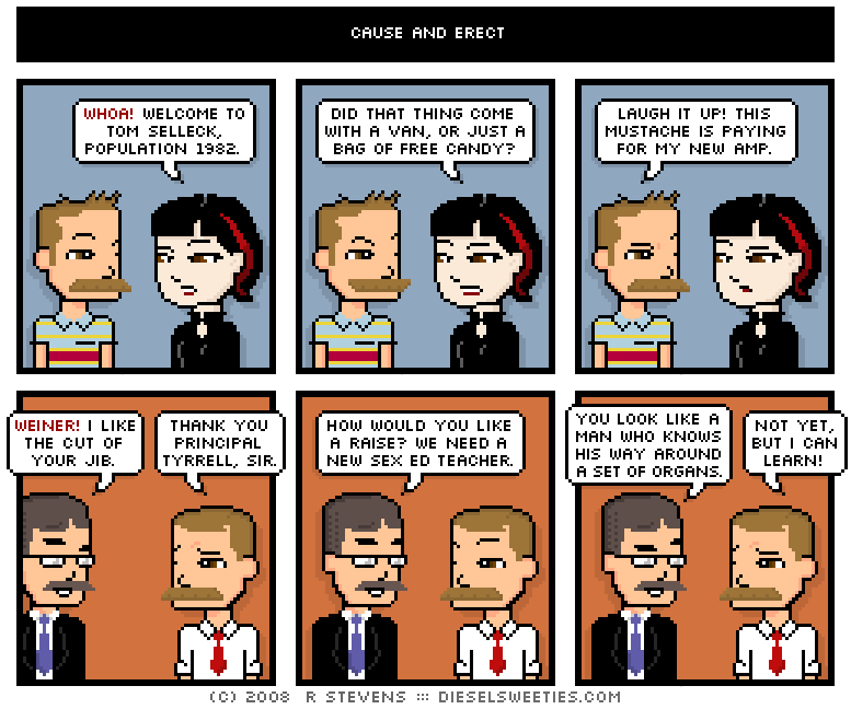 Diesel Sweeties is a pixelated webcomic by Richard Stevens 3 that has been running since April 2000. Sometimes the people kiss the robots.