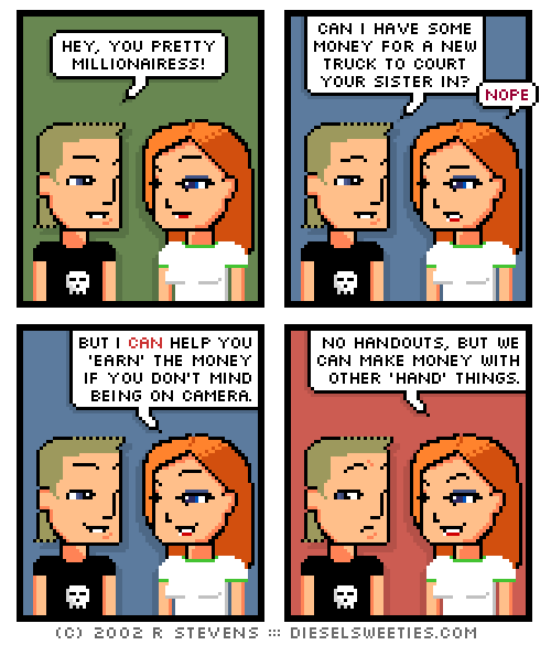 Diesel Sweeties is a pixelated webcomic by Richard Stevens 3 that has been running since April 2000. Sometimes the people kiss the robots.
