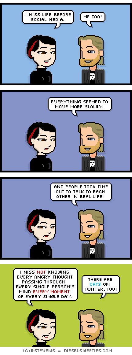 Tonight's comic wants to go back in time to before social media. Please like and subscribe.